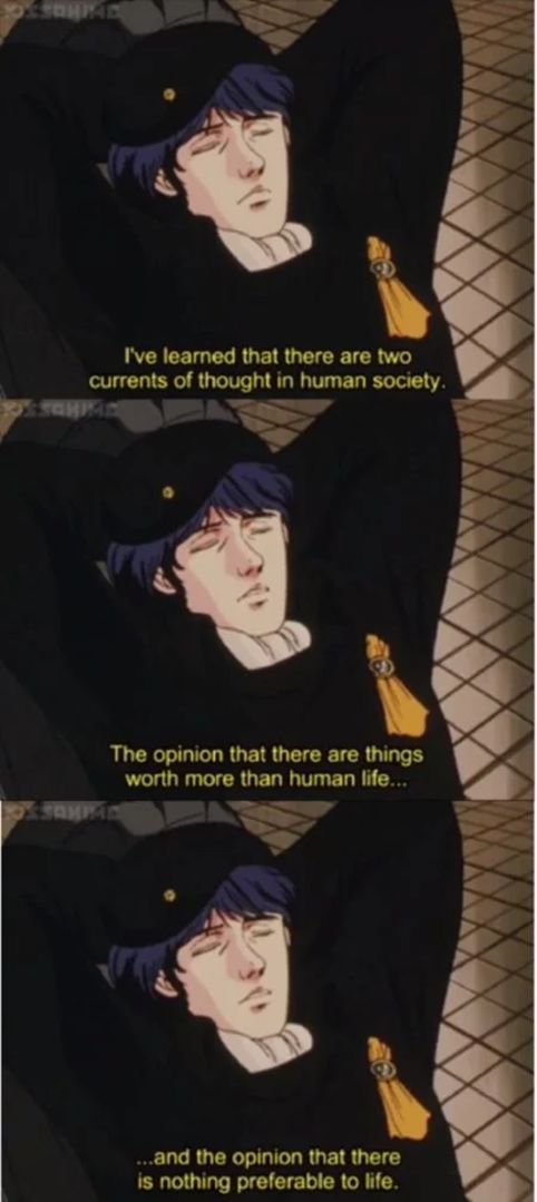 It is impossible to review LoGH without mentioning the two heroes, Reinhard and Yang. This is not merely because they are the protagonists, but because they serve as the means through which the author conveys his reflections. They embody two conflicting values and ideals that transcend the bleed and warfare.